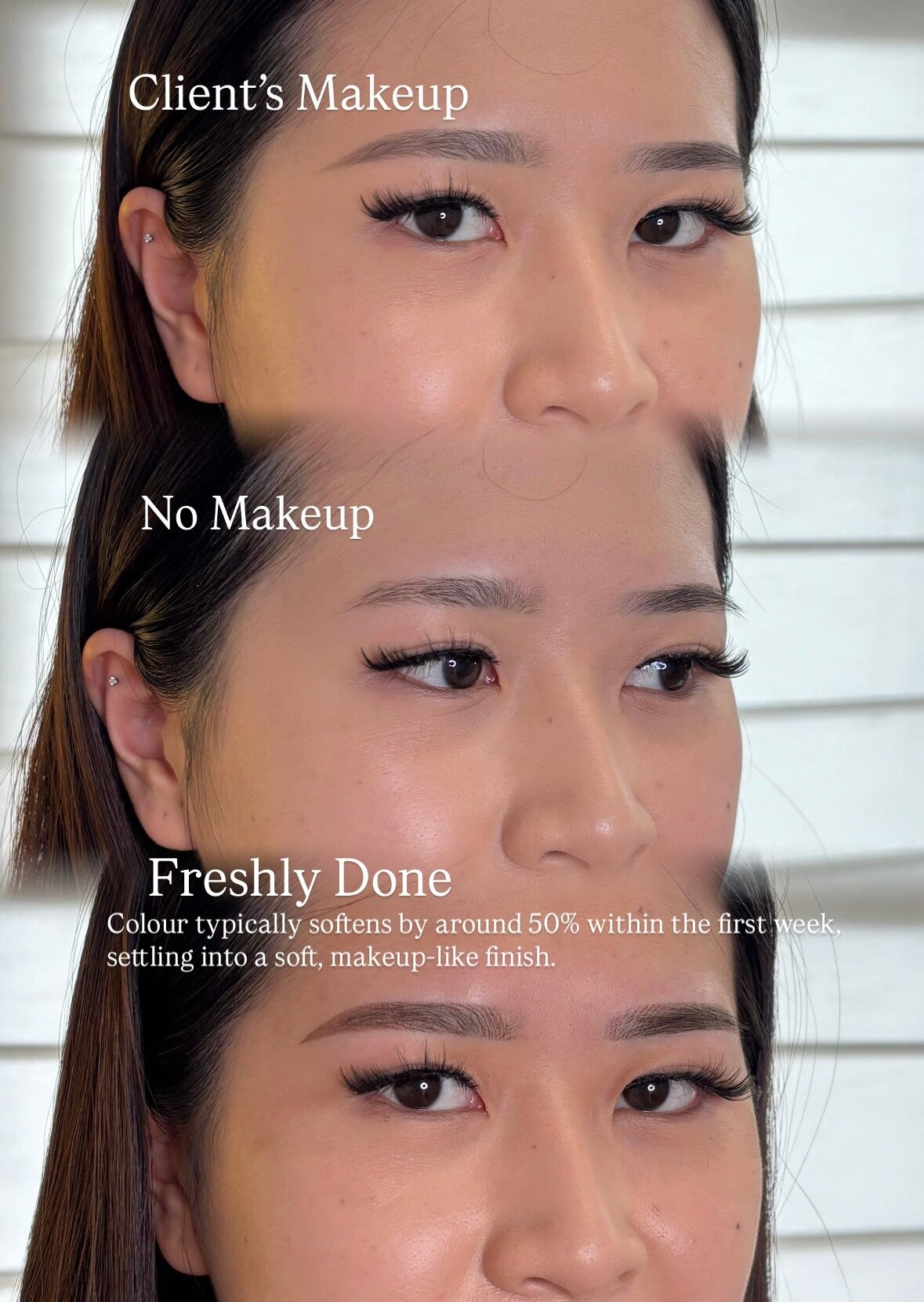 In reality, brows may look darker during the first week, but as healing progresses and light peeling occurs, the colour softens and settles into a natural, well-blended result.