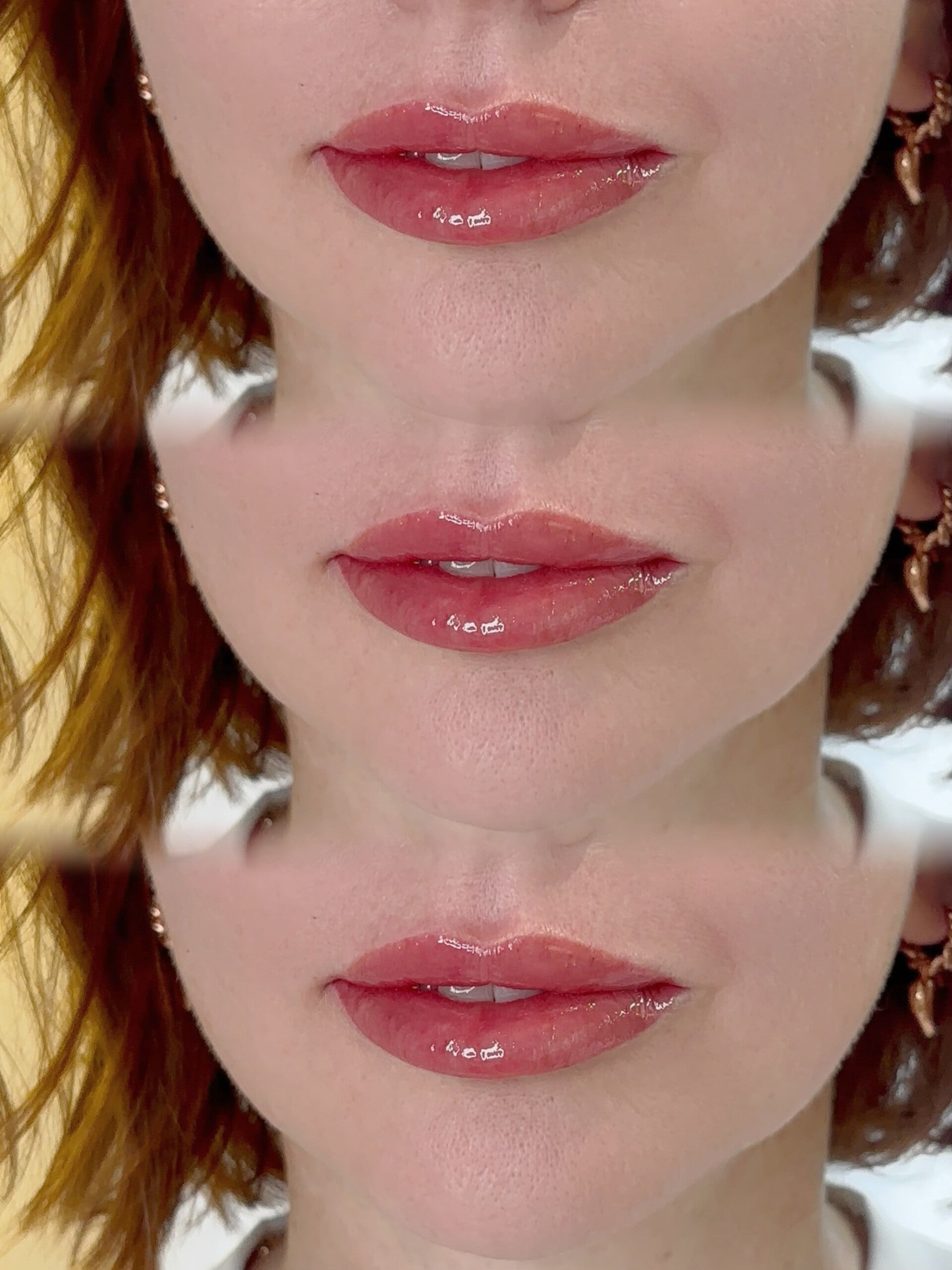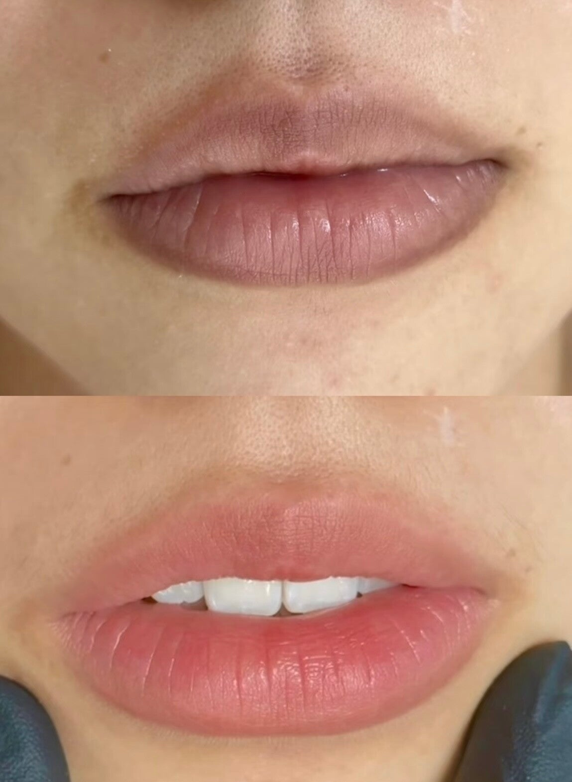 lip tattoo pigment is deposited within the skin and blends with your natural lip tone.
